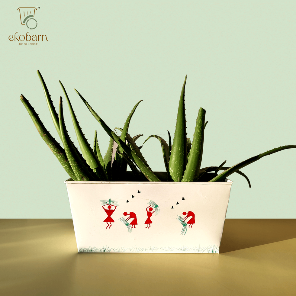 Elegant metal planter with hooks having Modern & Minimalist Design to enhance the beauty of your home. Best Suited for direct potting of all types of foliage or succulent plants. To be used as a table top planter. Perfect for the living room, bedroom, kitchen, office etc.